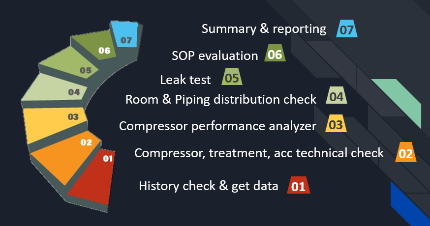 7 steps of a complete compressed air system audit